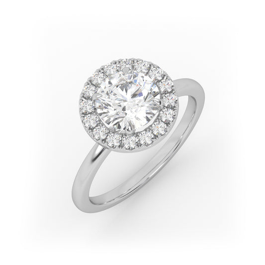Pierścionek z Złota 18k z Okrągłym Diamentem Laboratoryjnym i Halo - Białe złoto 18k