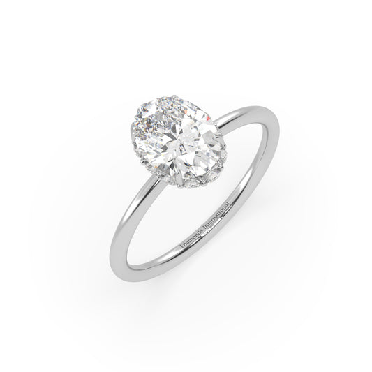 Pierścionek Zaręczynowy z Owalnym Diamentem i Underhalo - Białe złoto 18k