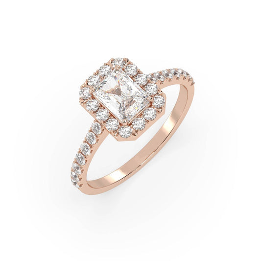 Pierścionek Zaręczynowy Halo z Diamentem o Szlifie Radiant i Obrączką Pavé - Różowe złoto 18k