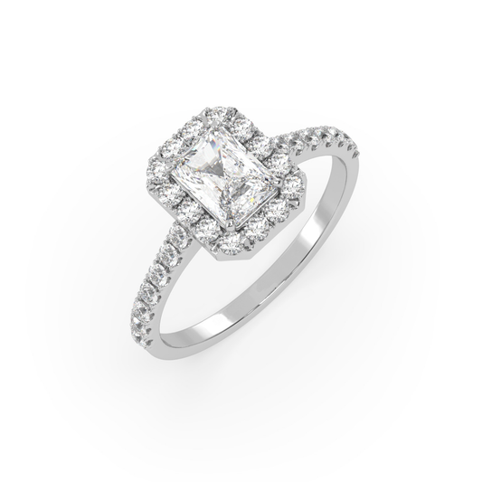 Pierścionek Zaręczynowy Halo z Diamentem o Szlifie Radiant i Obrączką Pavé - Białe złoto 18k