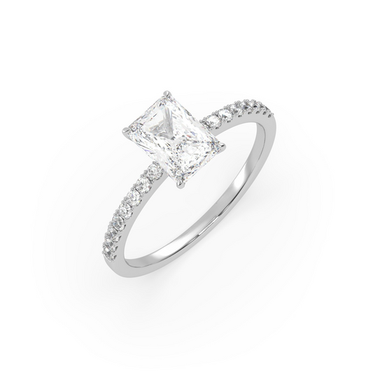 Pierścionek Zaręczynowy z Diamentem o Szlifie Radiant i Obrączką Pavé - Białe złoto 18k