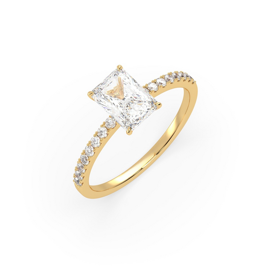 Pierścionek Zaręczynowy z Diamentem o Szlifie Radiant i Obrączką Pavé - Żółte złoto 18k