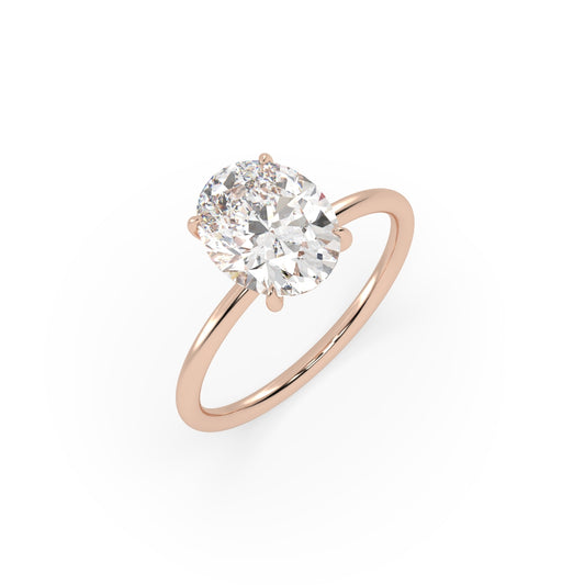 Pierścionek Zaręczynowy z Owalnym Diamentem i Underhalo - Różowe złoto 18k