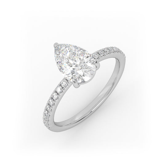 Pierścionek Zaręczynowy z Białego Złota 18k z Diamentem o Szlifie Gruszkowym i Obrączką Pavé