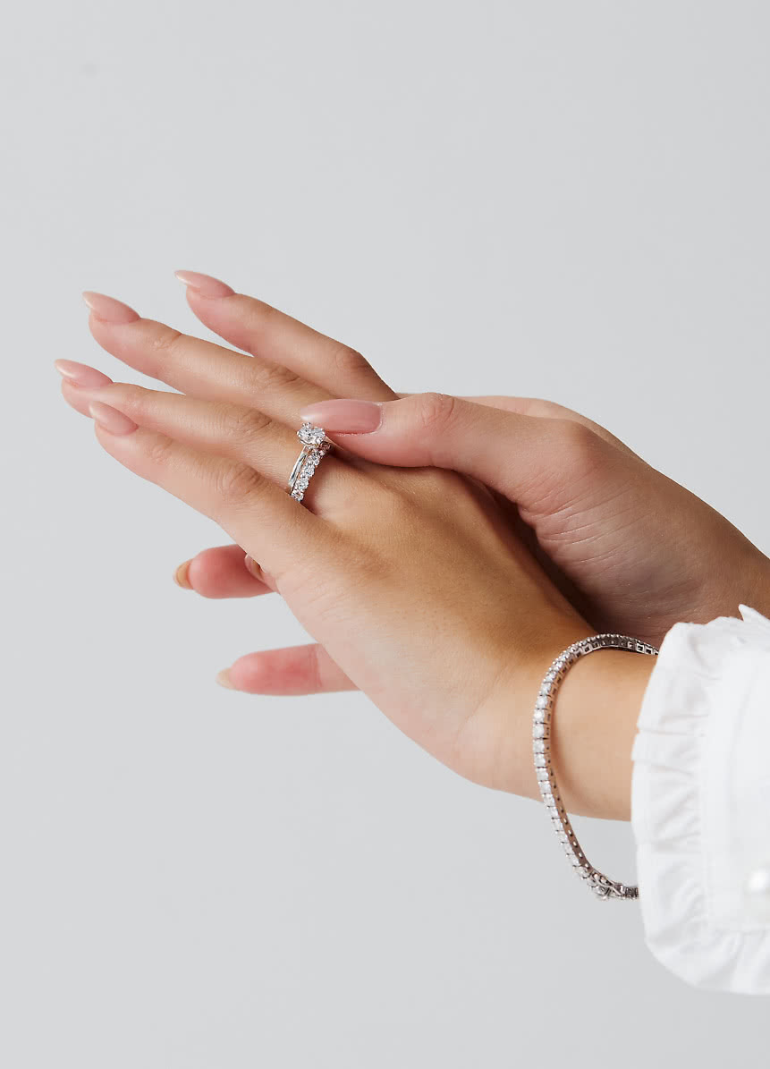 W MODIAMONDS zauważyliśmy, że wielu klientów sądzi, że pierścionek powinien łatwo zsuwać się z kostki palca; jednak to nie jest prawda. Idealne dopasowanie to takie, które wymaga lekkiego przekręcenia pierścionka, aby go zdjąć, co zapewnia, że nie spadnie on z palca.