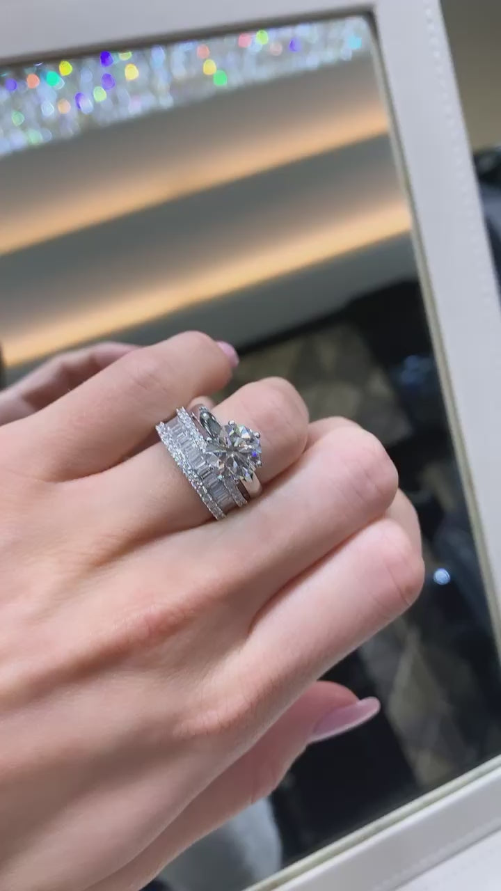 Ta wyjątkowa Obrączka Wieczności wykonana z 18-karatowego białego złota, zdobiona diamentami bagietkami oraz okrągłymi diamentami umieszczonymi na boku, reprezentuje szczyt elegancji i luksusu. Białe złoto, znane ze swojej subtelności i nowoczesnego wyglądu, idealnie harmonizuje z lśniącymi diamentami, tworząc efektowny, nieprzerwany pas światła. Ta obrączka jest doskonałym wyborem na zaręczyny, rocznice, czy jako wartościowy dodatek do każdej biżuterii – symbolizując wieczność uczuć i piękno bez końca.