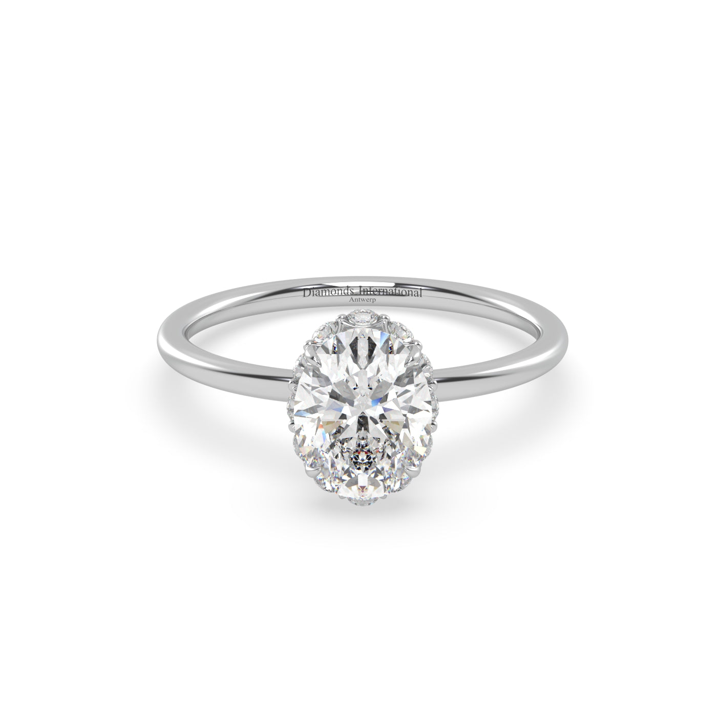Ten nowoczesny pierścionek z 18-karatowego białego złota wyróżnia się underhalo, które dodaje dodatkowego blasku i głębi pod głównym kamieniem. Underhalo, skomponowane z drobnych diamentów, jest subtelnie umieszczone pod centralnie osadzonym kamieniem, tworząc efekt przepięknej iluminacji z każdego kąta. Chłodne tony białego złota doskonale współgrają z jasnością diamentów, oferując wyrafinowaną elegancję i nowoczesny wygląd. Idealny jako pierścionek zaręczynowy, łączy w sobie klasykę z nowoczesnymi rozwiązaniami designu, doskonale nadając się na wyjątkowy prezent dla wyjątkowej osoby.