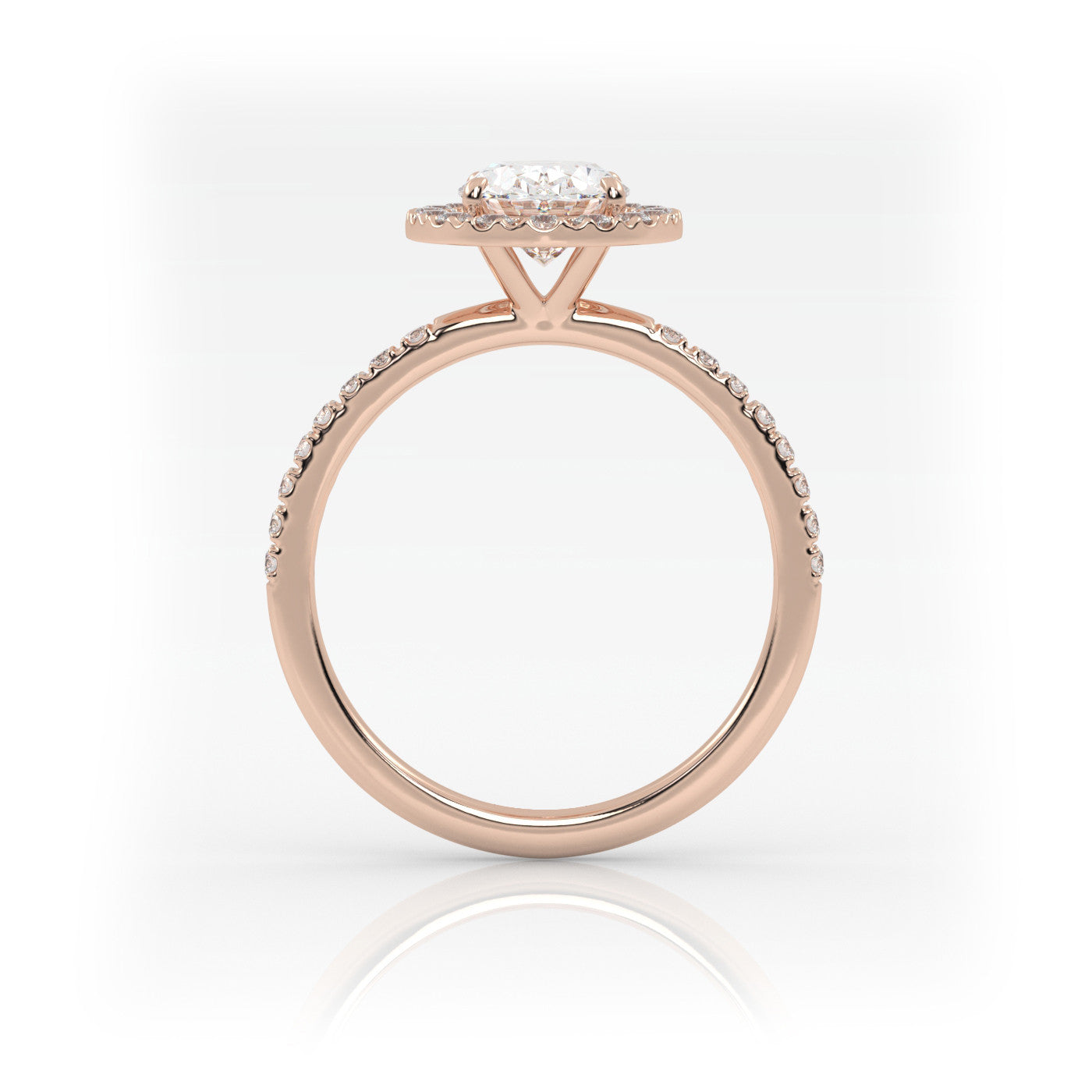 Pierścionek Halo z Różowego Złota 18k z Owalnym Diamentem i Obrączką Pavé