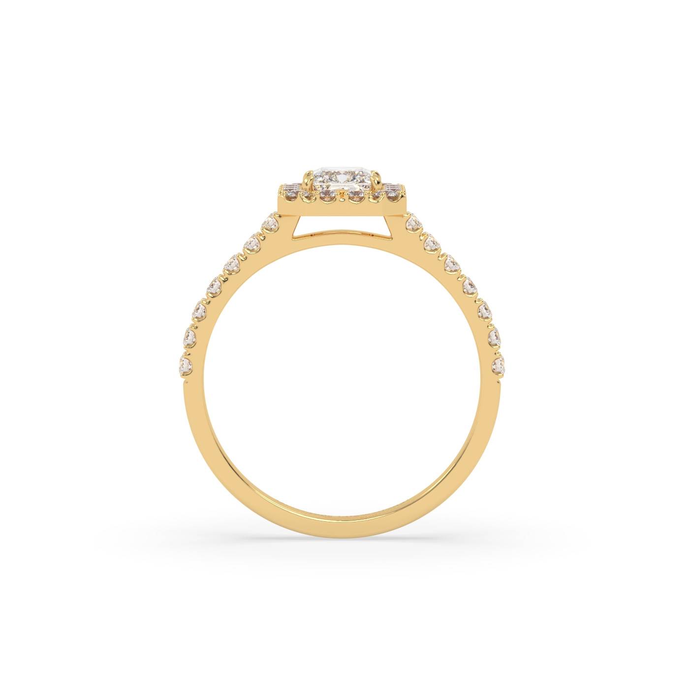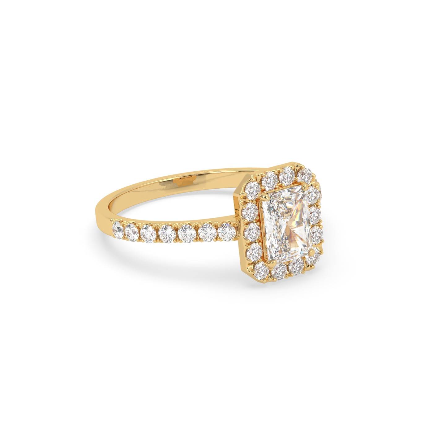 Pierścionek Halo z Żółtego Złota 18k z Diamentem o Szlifie Radiant i Obrączką Pavé