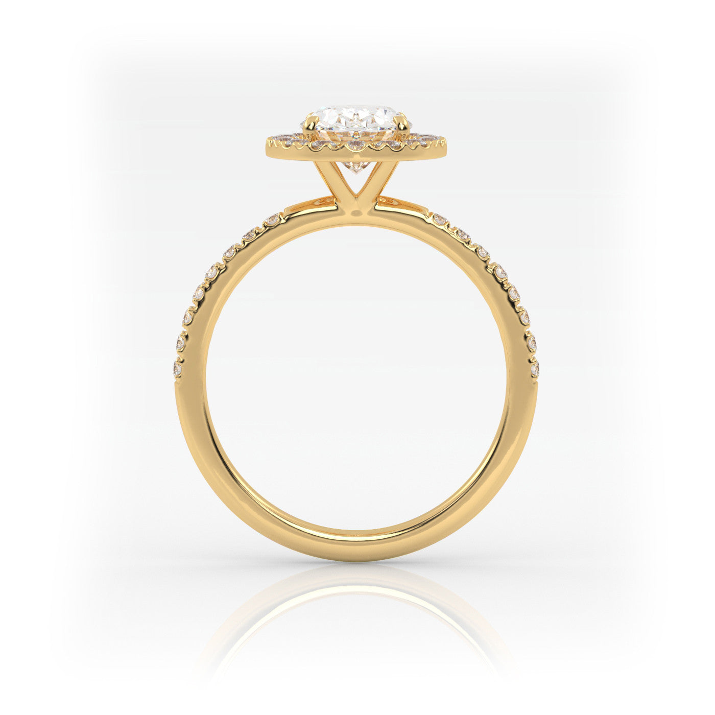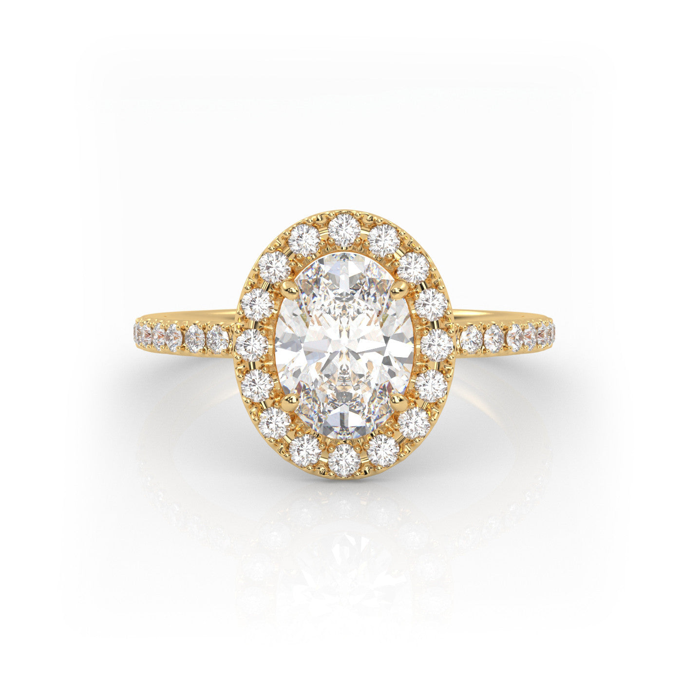 Pierścionek Halo z Żółtego Złota 18k z Owalnym Diamentem i Obrączką Pavé