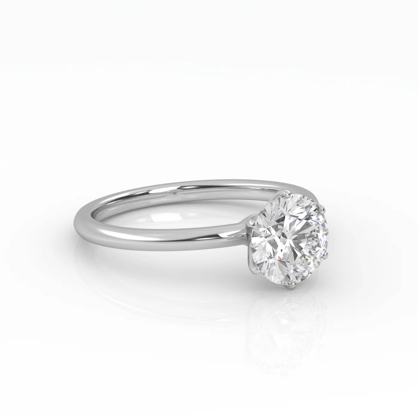 Pierścionek Solitarny z Białego Złota 18k z Okrągłym Diamentem Laboratoryjnym w Oprawie Sześciopazurkowej