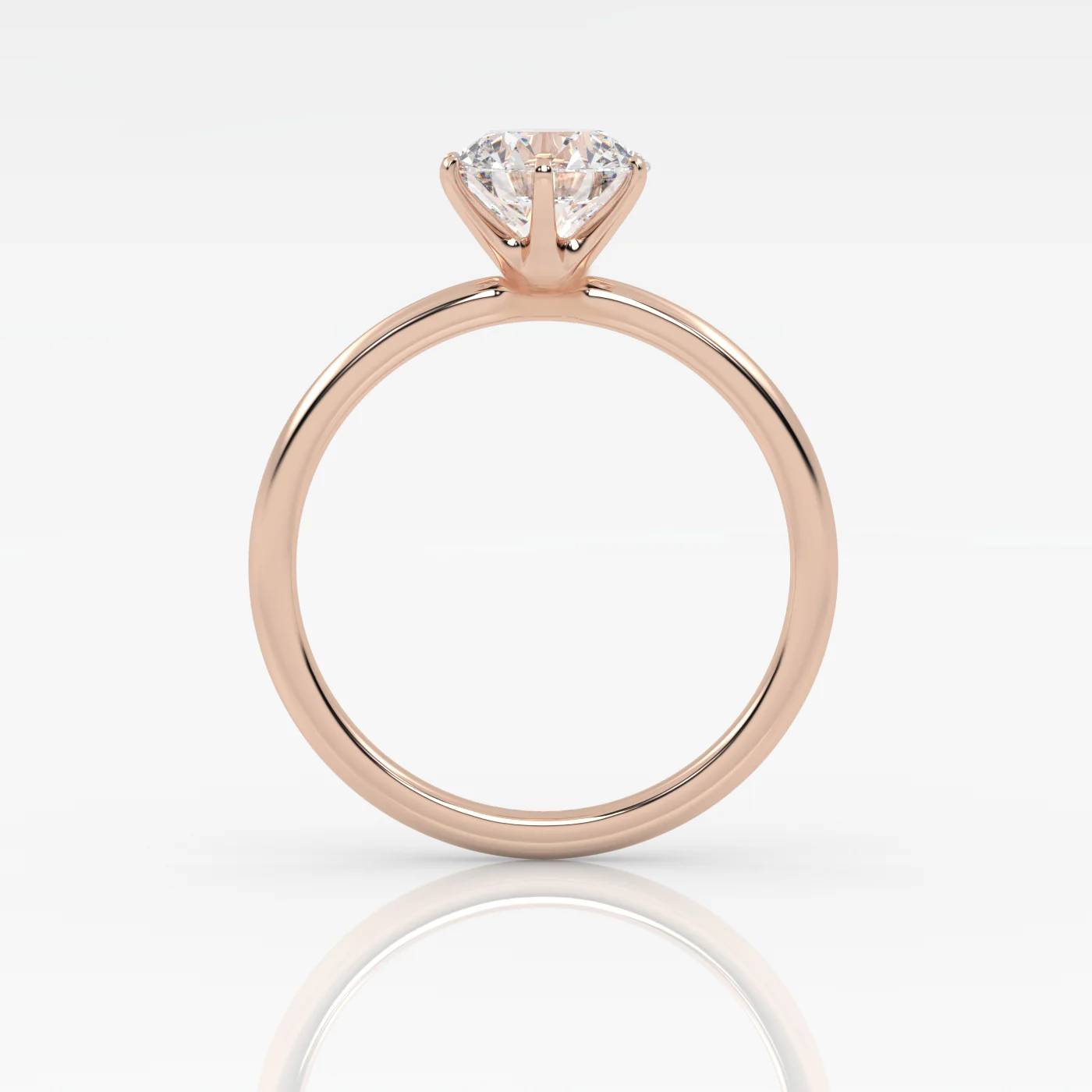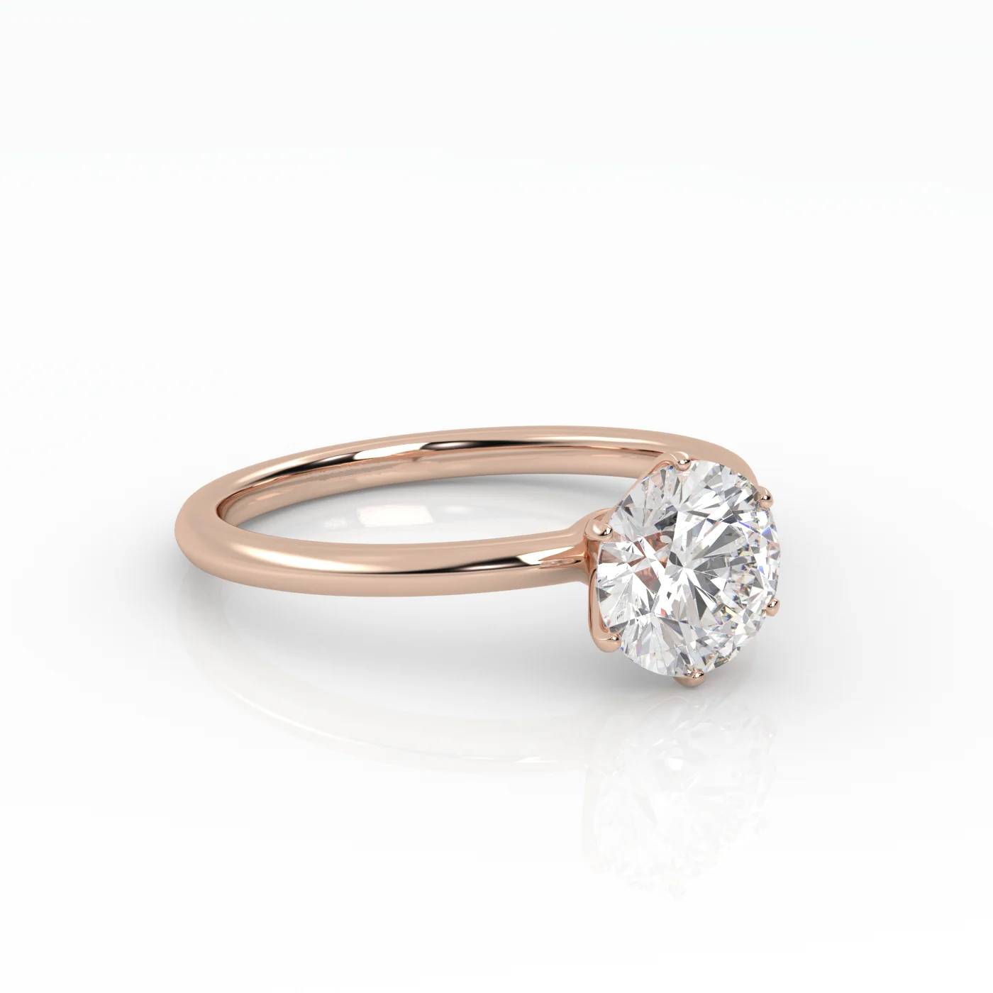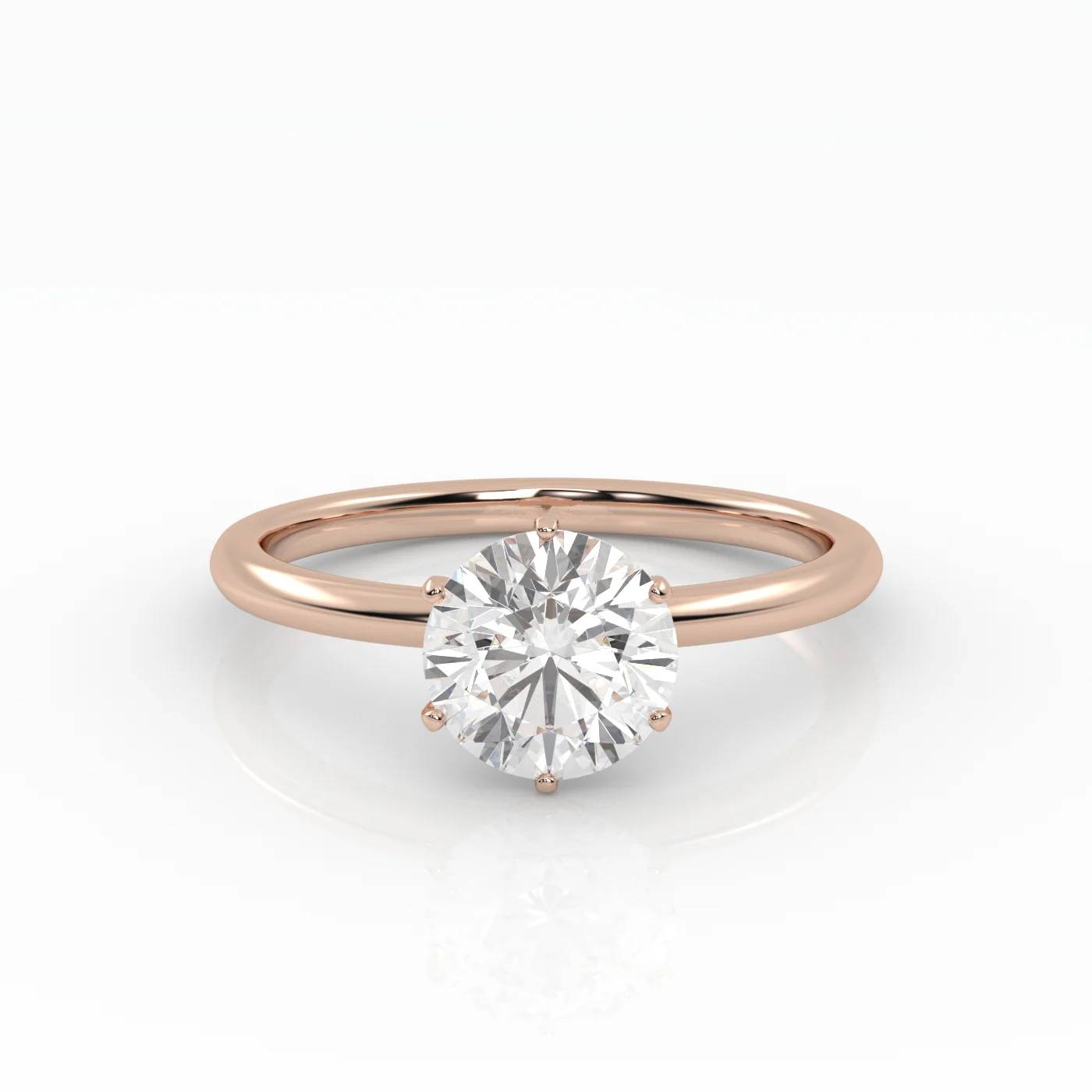 Pierścionek Solitarny z Różowego Złota 18k z Okrągłym Diamentem Laboratoryjnym w Oprawie Sześciopazurkowej