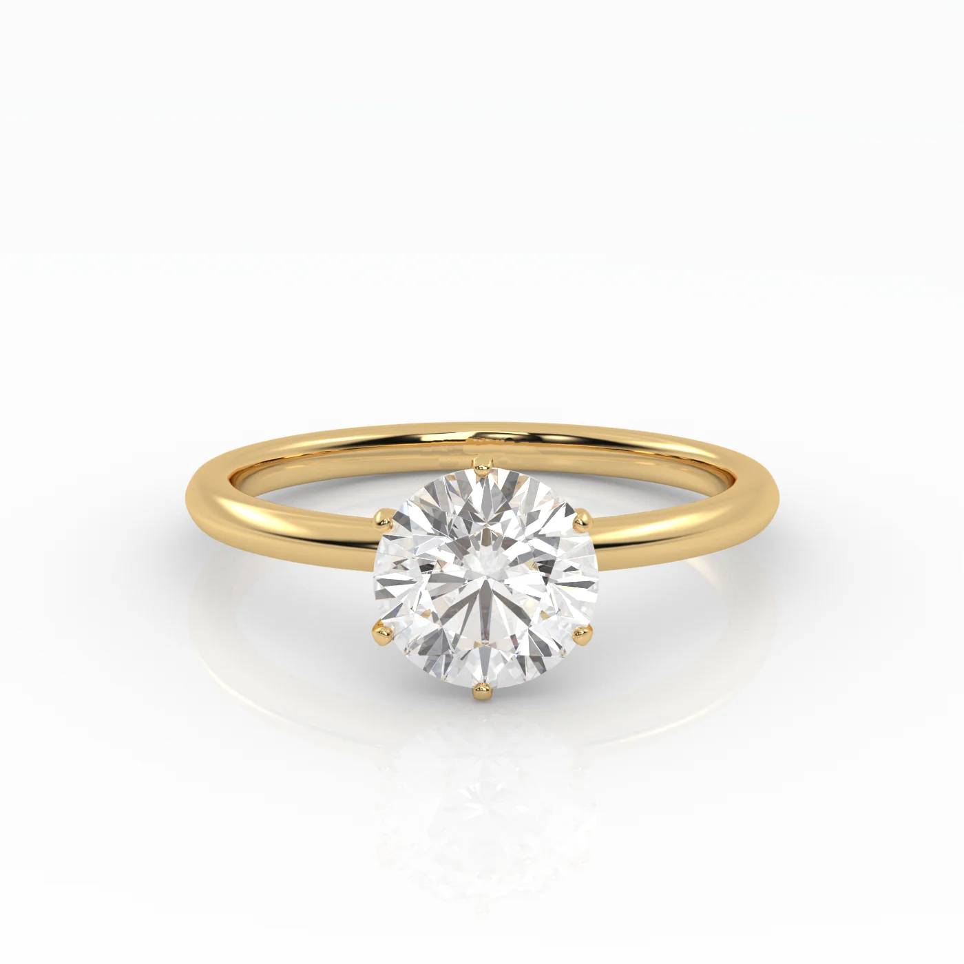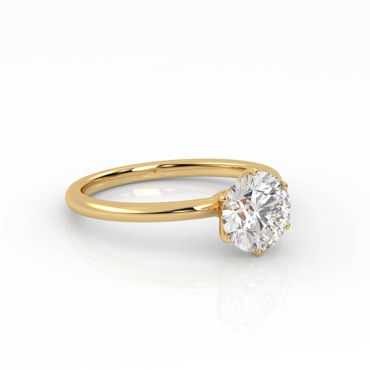 Pierścionek Solitarny z Żółtego Złota 18k z Okrągłym Diamentem Laboratoryjnym w Oprawie Sześciopazurkowej
