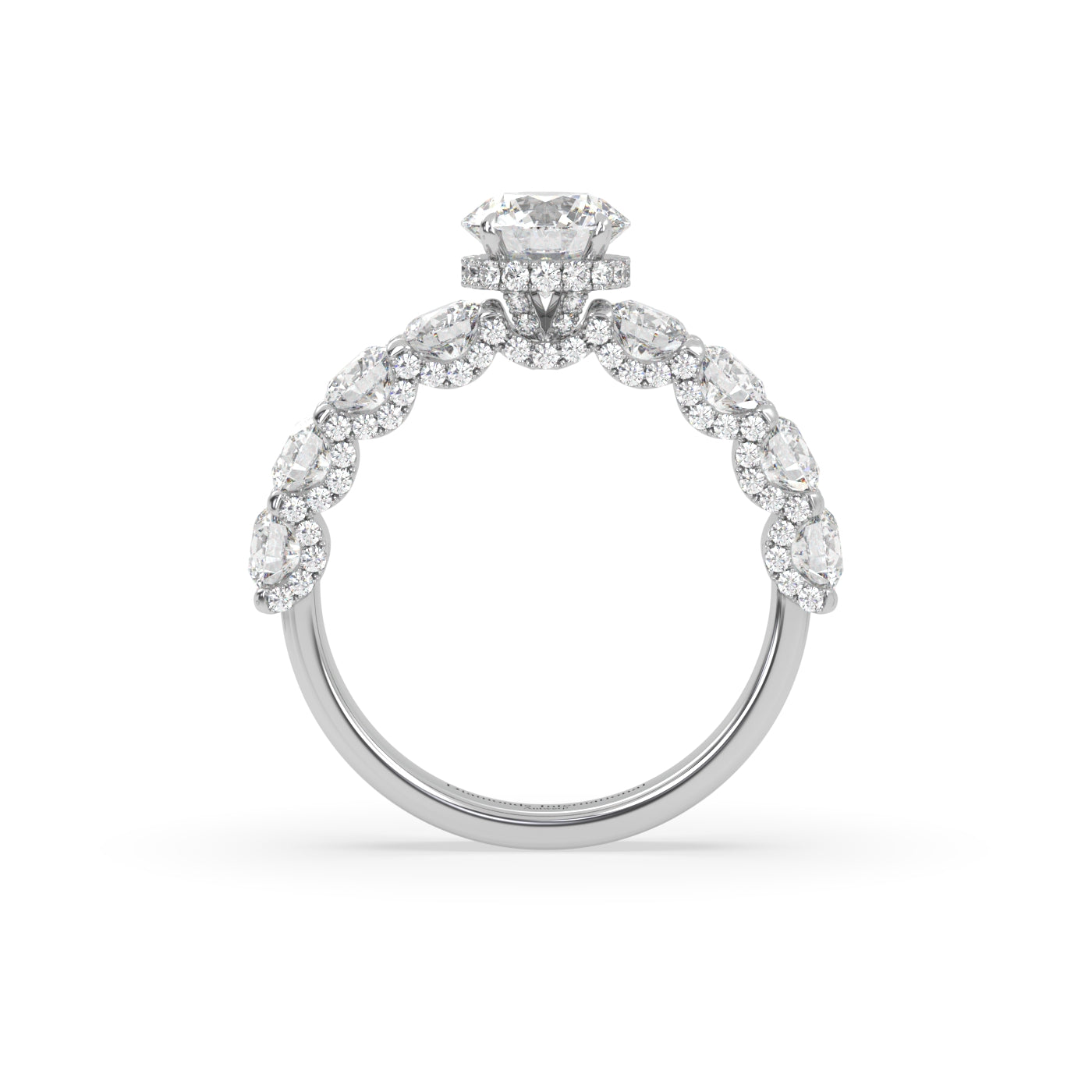 Pierścionek z Białego Złota 18k z Laboratoryjnym Okrągłym Diamentem, Bocznymi Diamentami i Diamentami Pod Pazurami