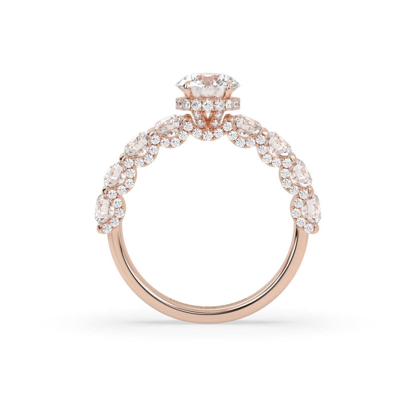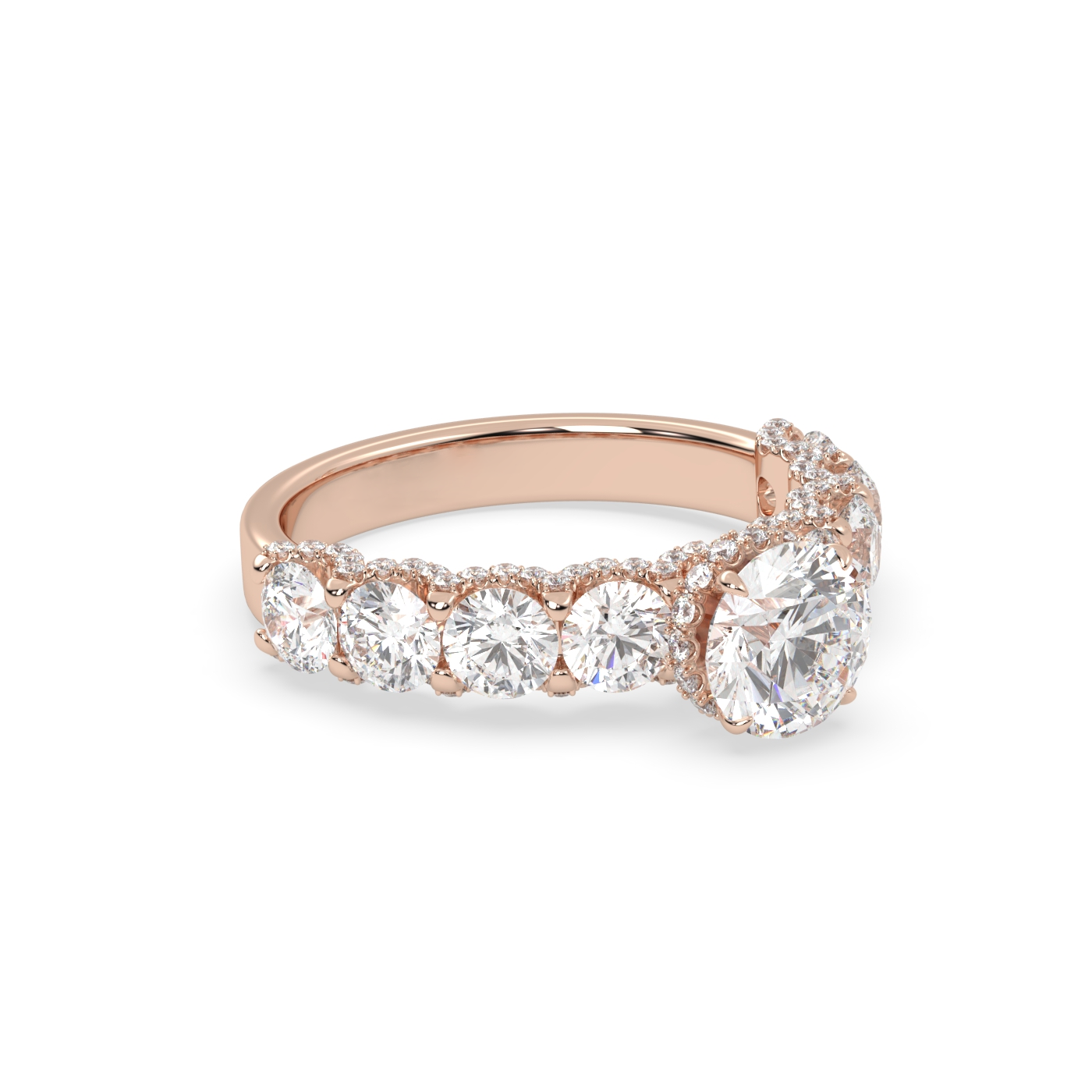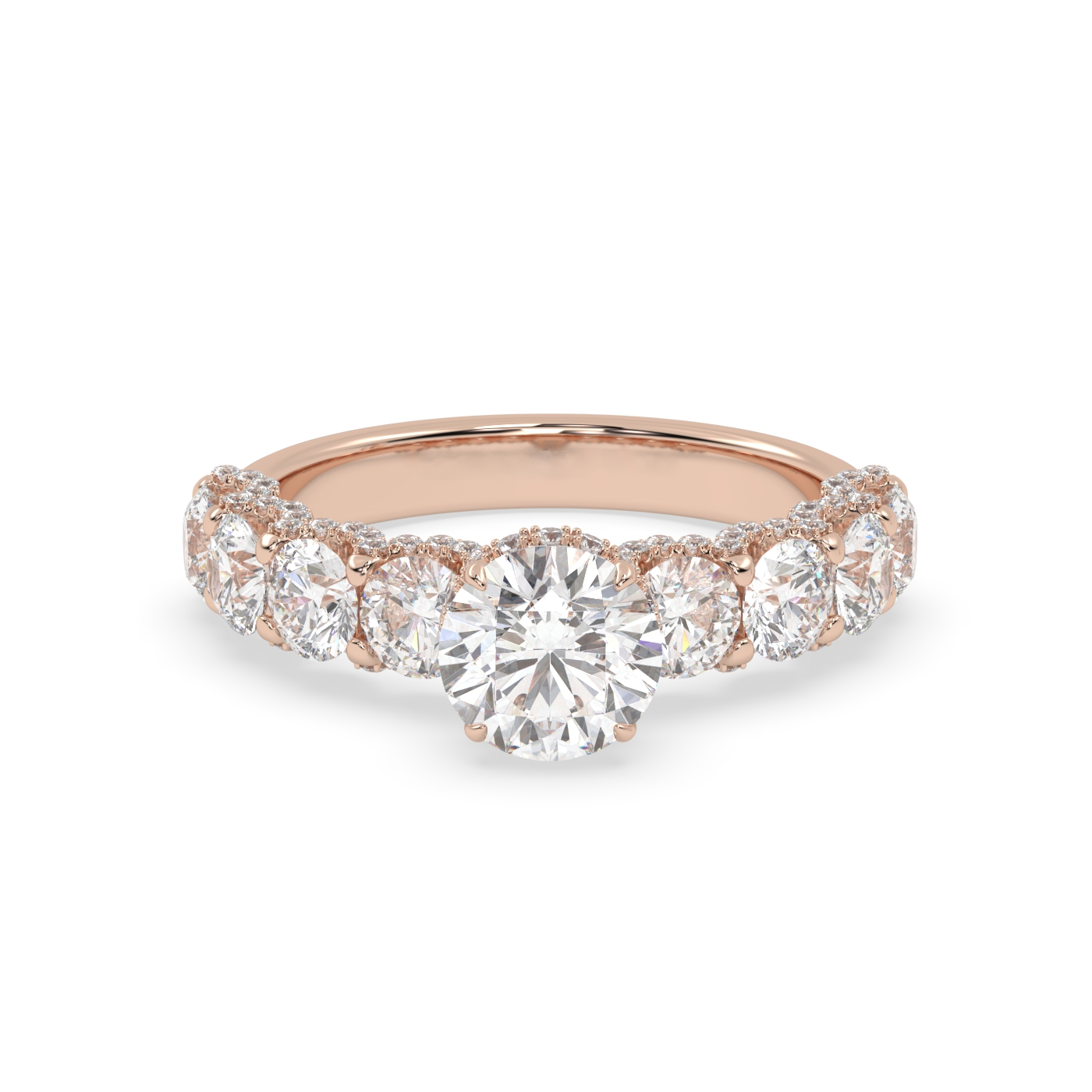 Pierścionek z Różowego Złota 18k z Laboratoryjnym Okrągłym Diamentem, Bocznymi Diamentami i Diamentami Pod Pazurami