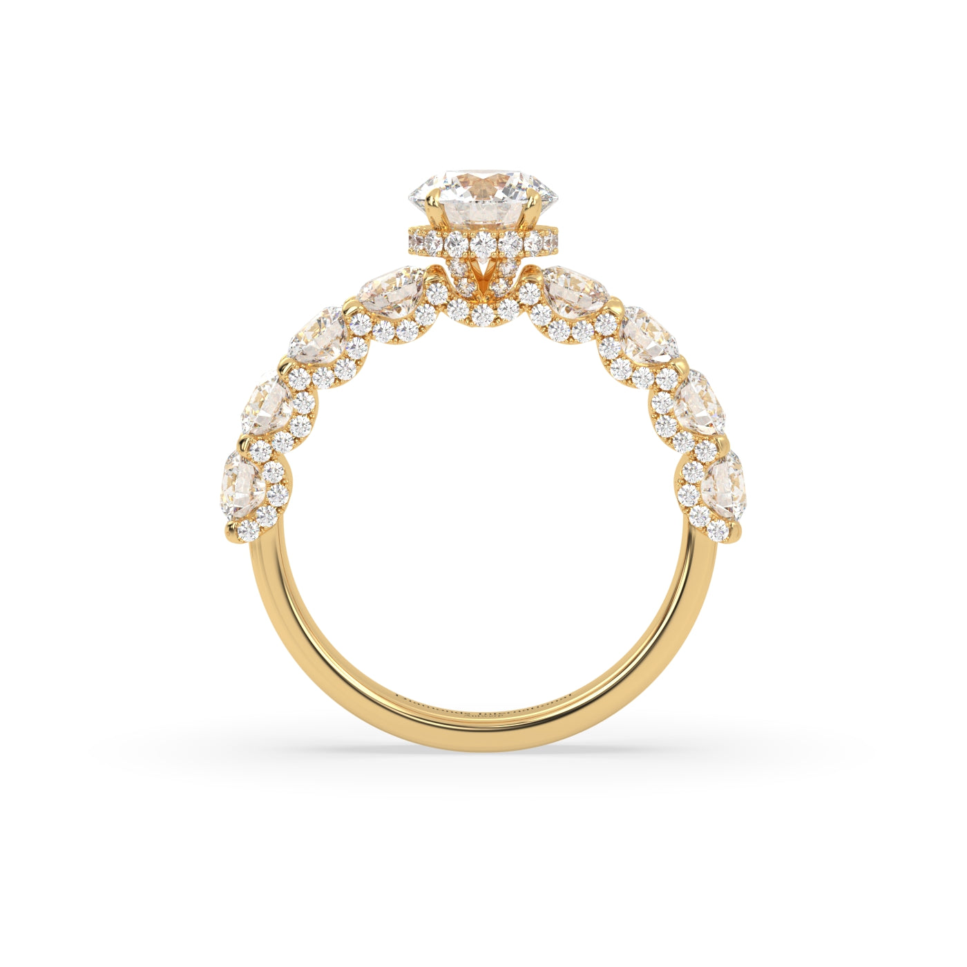 Pierścionek z Żółtego Złota 18k z Laboratoryjnym Okrągłym Diamentem, Bocznymi Diamentami i Diamentami Pod Pazurami