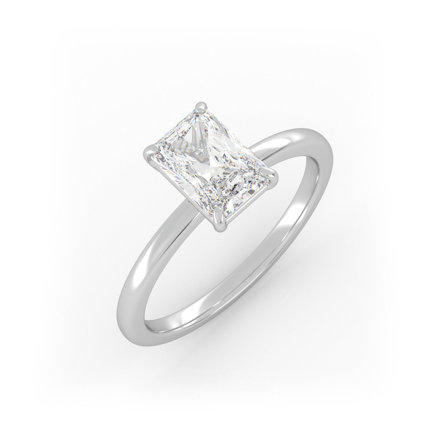 Pierścionek Zaręczynowy Solitarny z Białego Złota 18k z Diamentem o Szlifie Radiant