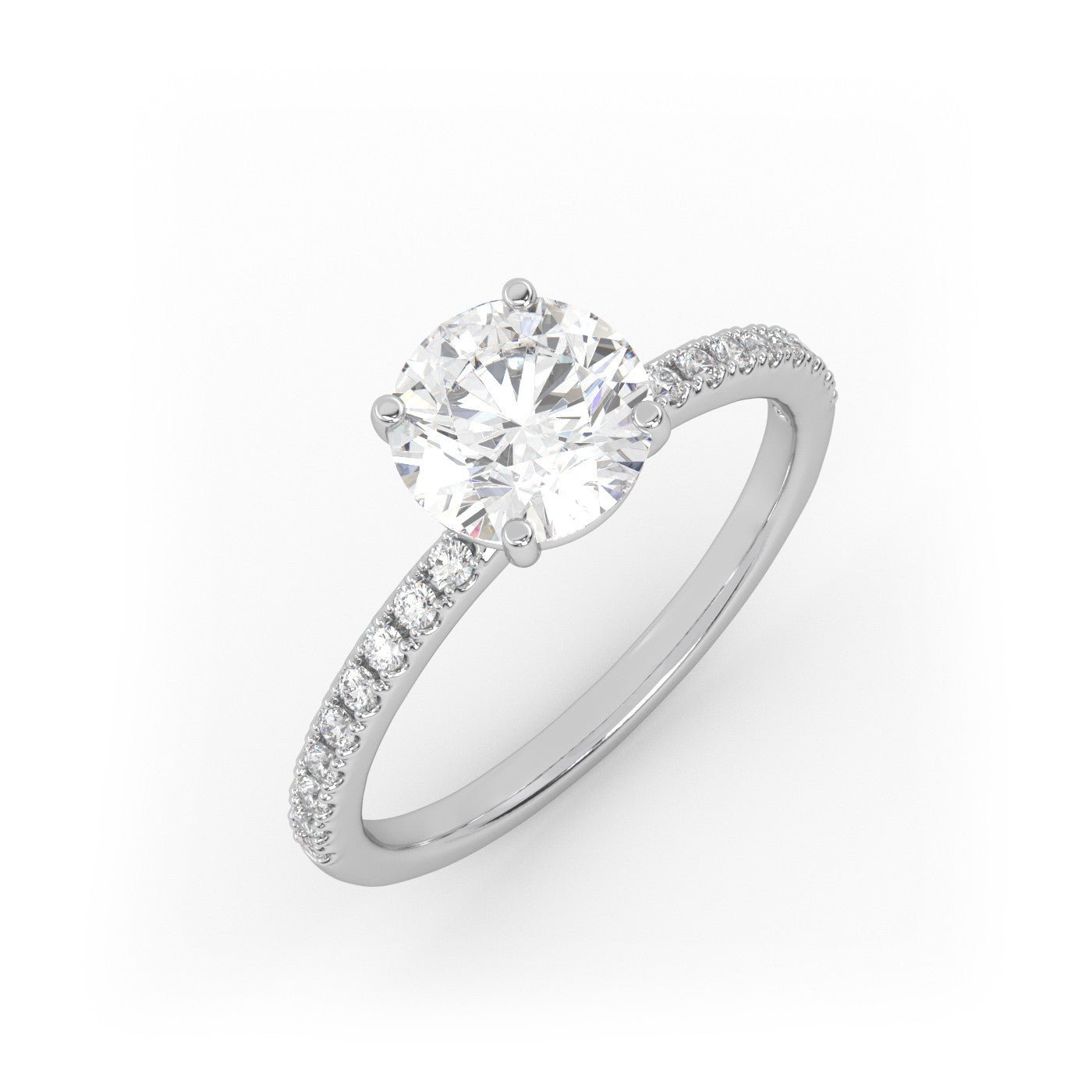 Ten elegancki pierścionek zaręczynowy z 18-karatowego złota prezentuje centralnie umieszczony, okrągły diament o doskonałym szlifie, który jest głównym punktem tego wyjątkowego dzieła jubilerskiego. Dodatkowy blask zapewnia osada pavé z drobnych diamentów, które delikatnie pokrywają obrączkę, tworząc olśniewające tło dla centralnego kamienia. Idealny wybór dla osób poszukujących połączenia klasycznej elegancji z nowoczesnym akcentem, ten pierścionek symbolizuje trwałość uczuć i jest przepięknym wyborem na wyrażenie głębokiej miłości i zaangażowania.