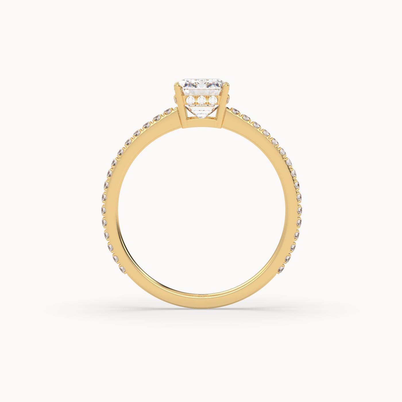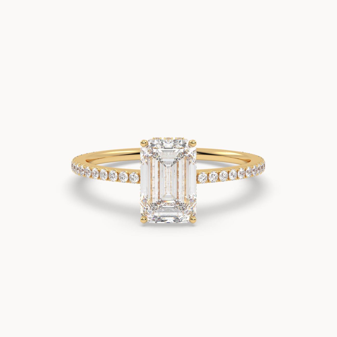 Pierścionek z Żółtego Złota 18k z Diamentem Laboratoryjnym o Szlifie Szmaragdowym, Bocznymi Diamentami Pavé i Underhalo
