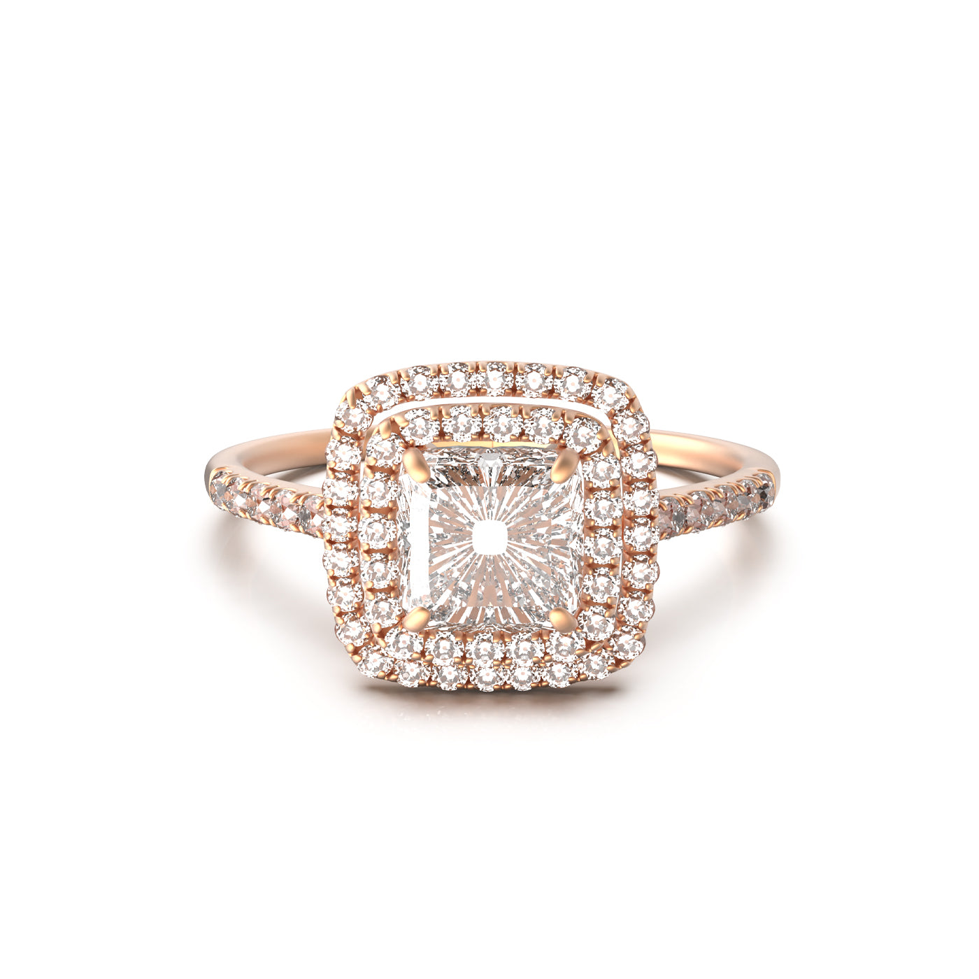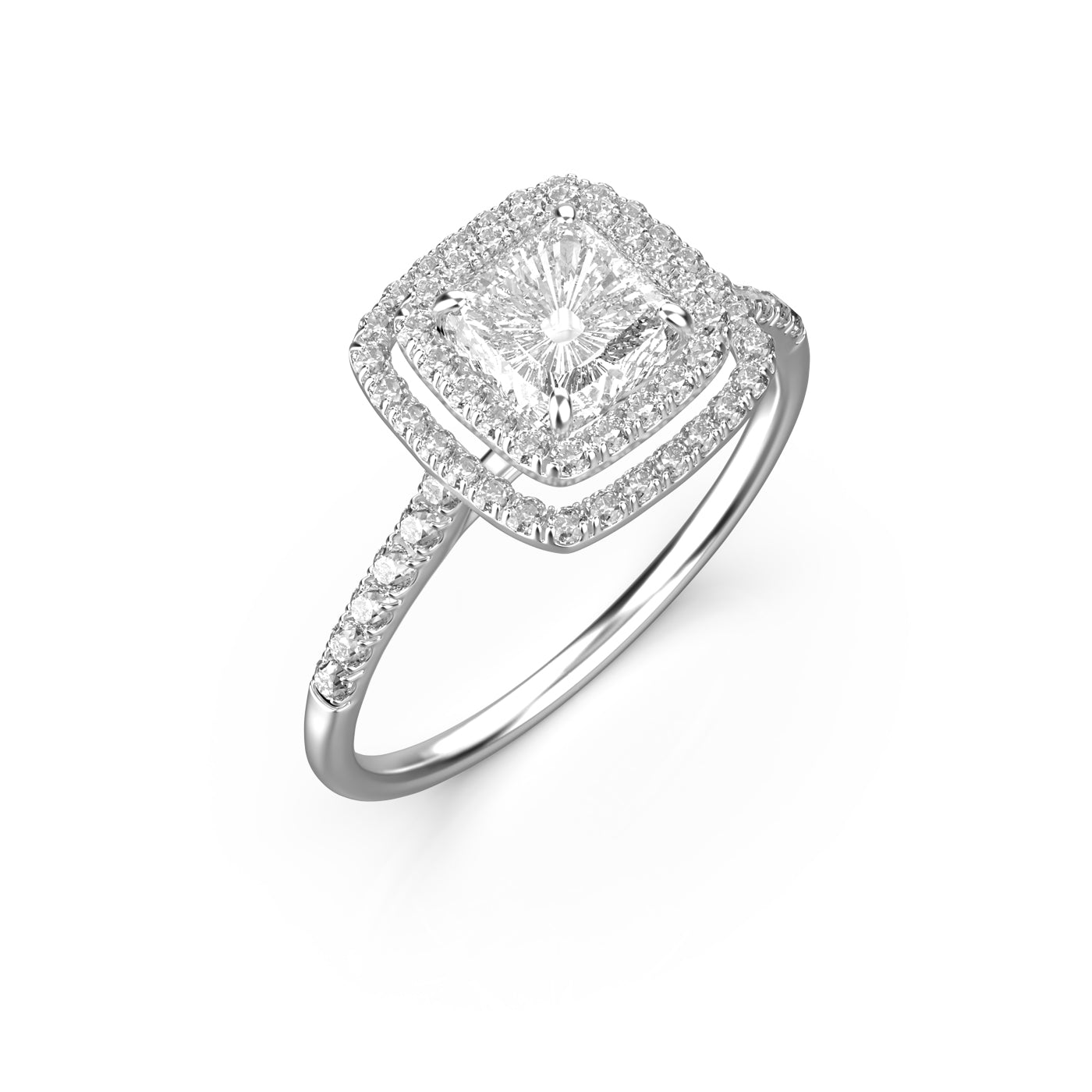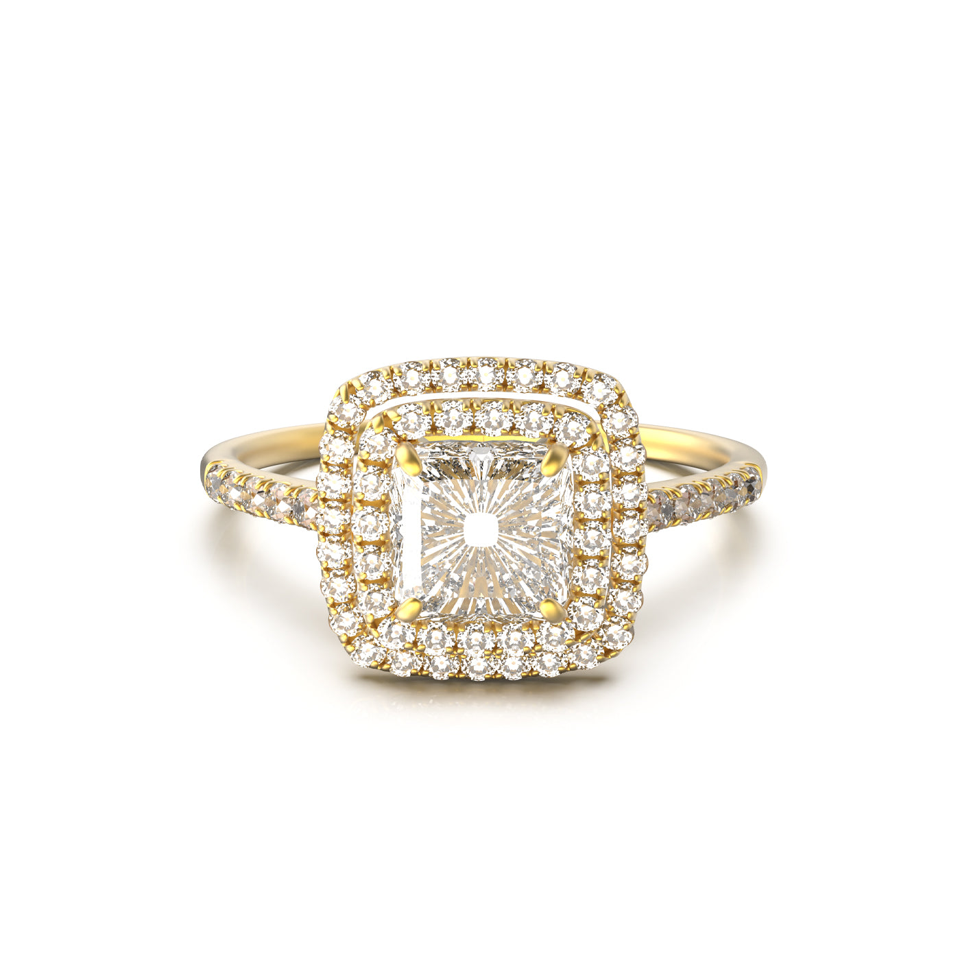 Podwójny Pierścionek Halo w Kształcie Poduszki z Diamentami Pavé na Złocie 18k z Okrągłym Centralnym Diamentem